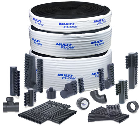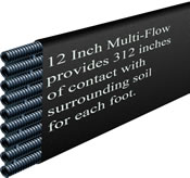 Collecting water – Water can enter a Multi-Flow drain more readily because Multi-Flow has greater surface area than traditional round pipe. The more drainage product that is in contact with surrounding saturated soil, the more quickly drainage can take place.